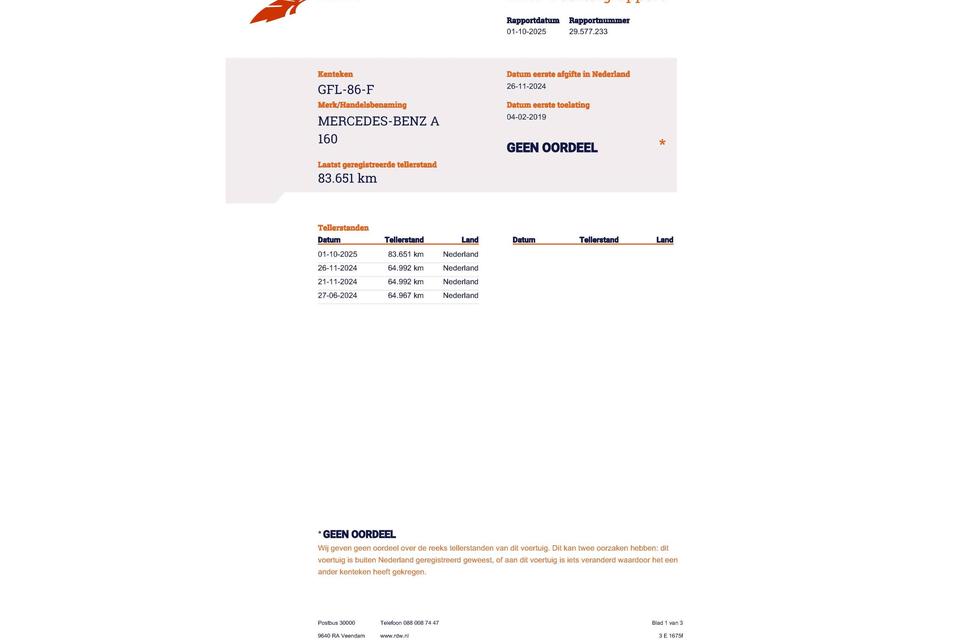 Huidige stand slechts 83.651km