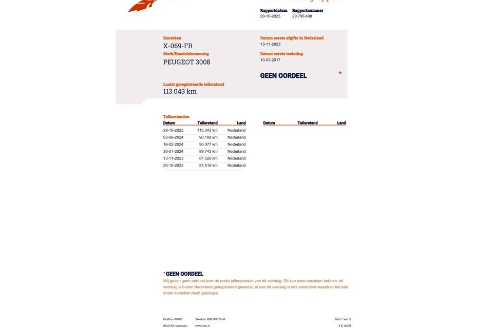 Huidige stand 113.043km